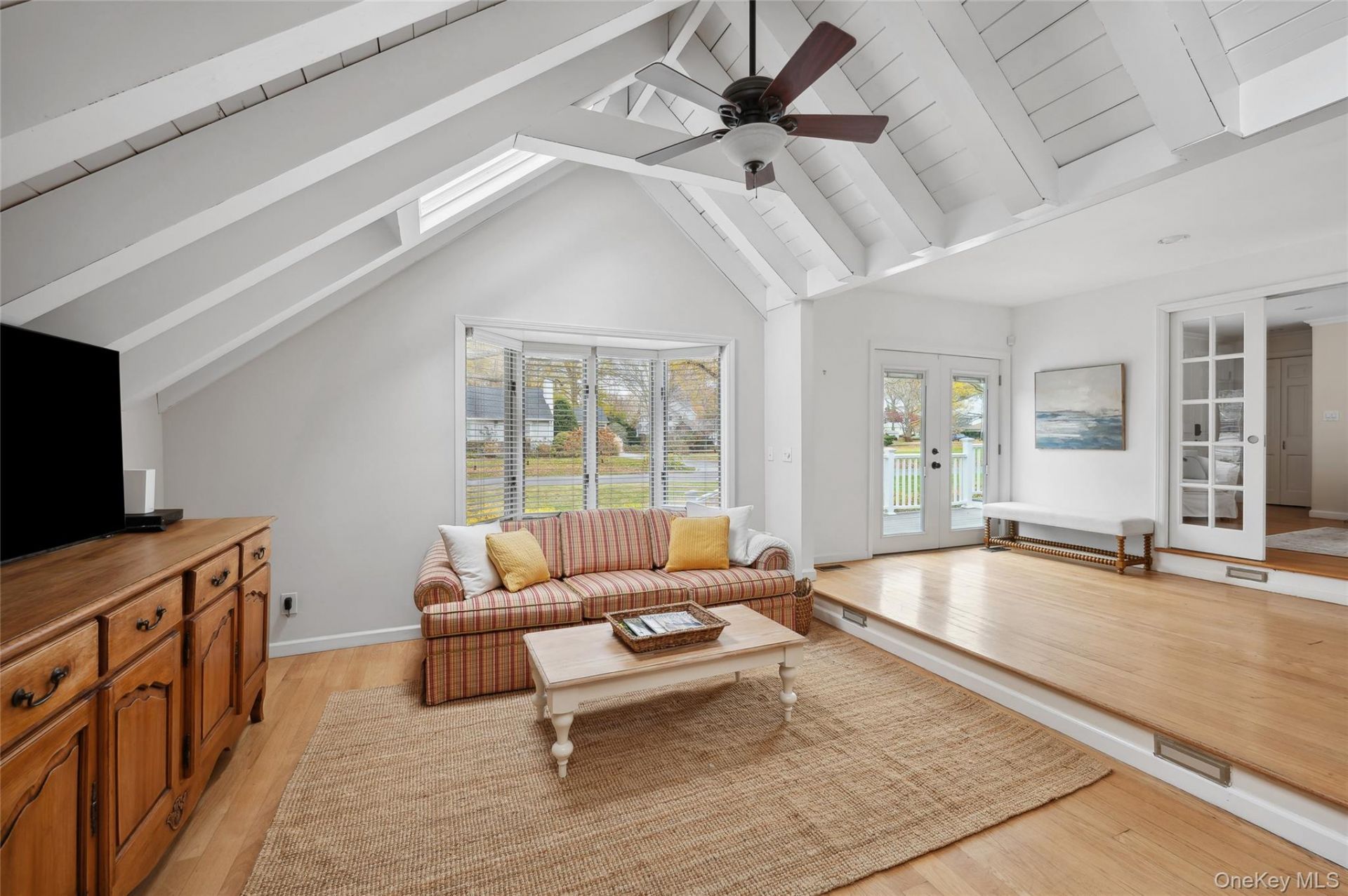 Nestled within the exclusive beach community of Jamesport, this renovated six-bedroom, five-bath residence offers approximately 3,300 square feet of thoughtfully designed living space, embodying coastal living at its best. An open, seamless floor plan is enhanced by expansive windows and sliding glass doors that flood the interiors with natural light. The well-appointed kitchen features a Bosch dishwasher, Bertazzoni stove, and GE Cafe refrigerator, while both first- and second-floor primary suites provide flexibility and comfort alongside generously sized guest bedrooms. Sited on a picturesque half-acre, the property offers exceptional outdoor living with multiple decks, lush landscaping for privacy, and ample room for entertaining, as well as space for a potential pool. Additional highlights include a two-car detached garage with a storage loft above and a charming red barn, ideal for hosting or creative use, all just a short distance from the beach.
